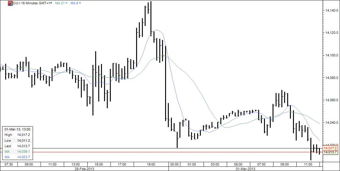 DOW is working to get above the broken S line at 14.017.2. DOW trends are down.